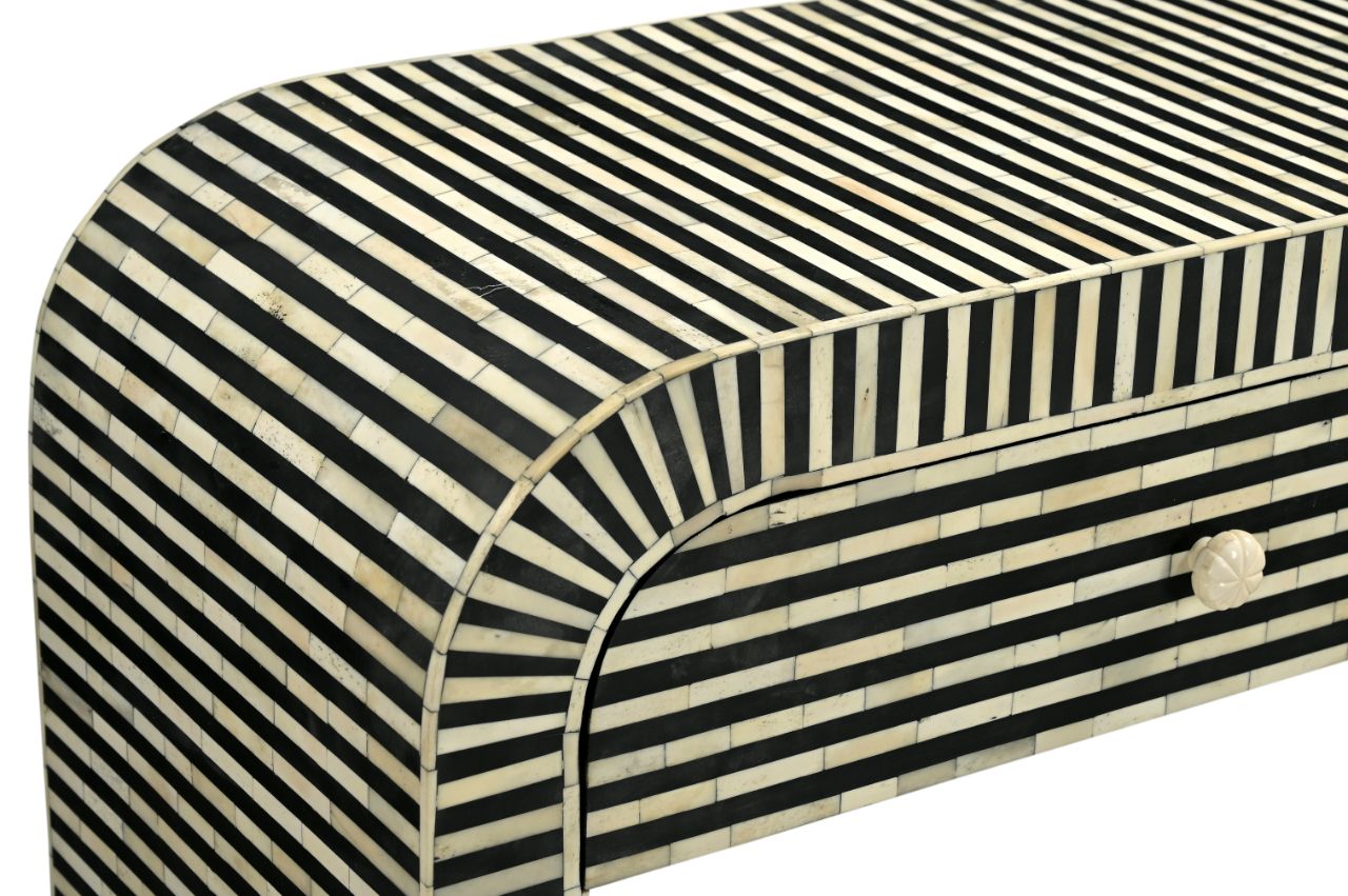 - Captivating Design: The Bone Inlay Console features a captivating Black and White design.