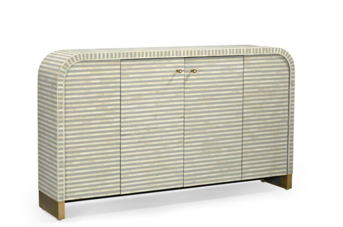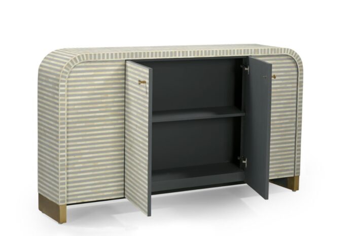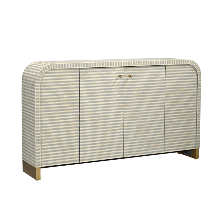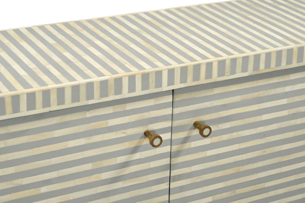 - Understated Elegance: Our Off Grey and White Bone Inlay Console exudes understated elegance.